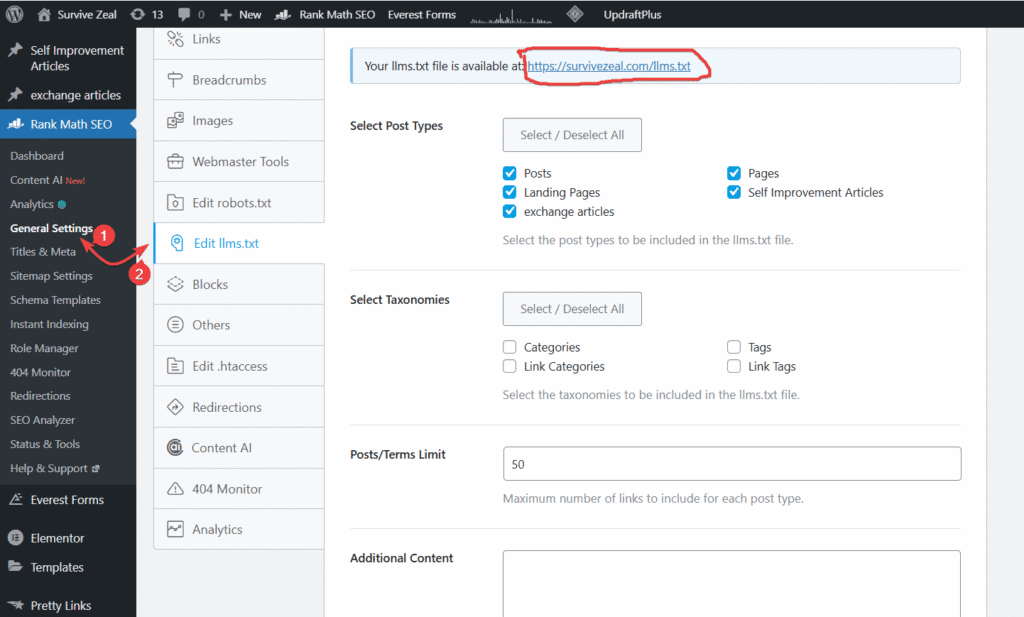 Go to Rank Math → Dashboard → LLMS.txt. And toggle the button “ON”.
