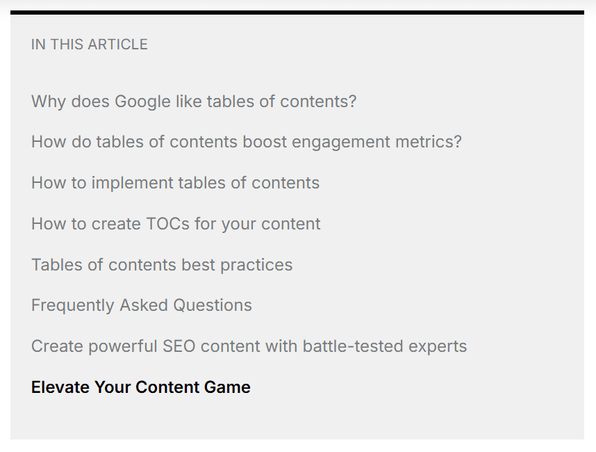 When AI systems crawl your TOC, they can quickly detect all the key topics covered on your page.